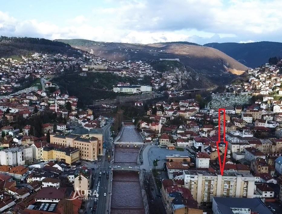 Samo 50m od Vijećnice, ovaj dragulj od stana je našao svoje skrovište u zgradi novije gradnje, iz kojeg se pruža pogled od “million dolara” na sarajevske simbole Vijećnicu, kasarnu Jajce, srarogradsku mahalu Alifakovac, na žutu i bijelu tabiju, sarajevsku žičaru, olimpijsku ljepoticu Trebević, a noću sjajna idila…